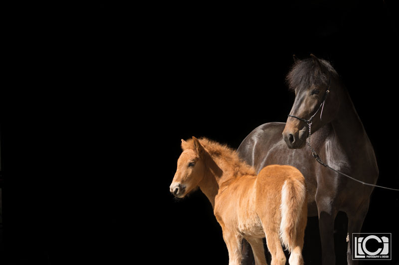 Het is tijd voor de black foto’s! Twee prachtige P.R.E’s stonden tijdens deze sessie voor ons model en wij hadden voor de deelnemers ook nog een leuke verrassing! Eind maart was er op stal een schattig hengstveulen geboren en die wilde samen met zijn mama ook wel even poseren.