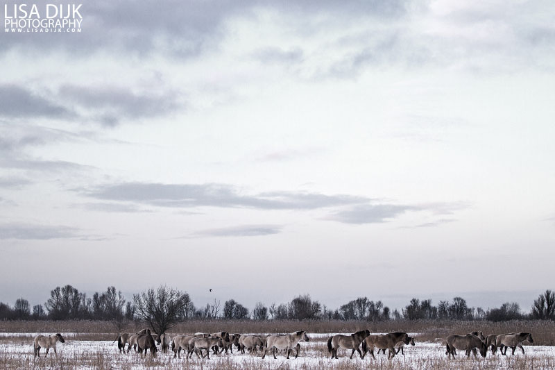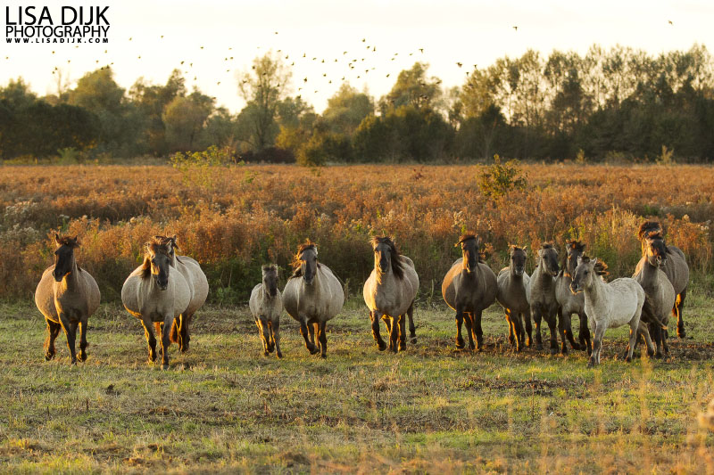 De Konik vindt zijn oorsprong in Polen. Sinds 1981 zijn ze echter ook te vinden in verschillende natuurgebieden in Nederland. Het is fantastisch om hun kuddegedrag vast te leggen!